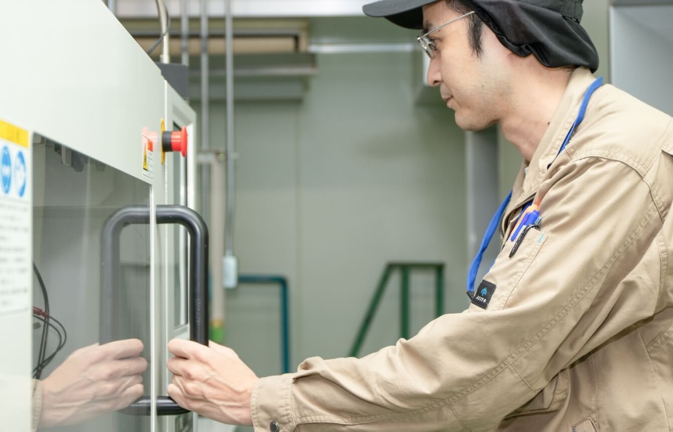 営業の方々が受注してきた案件の中でも、新規案件のトライアルを中心に行っています。お客様のご要望に応えるためにはどんな設備が必要なのかを考え、それに必要なものを決めていく仕事です。試作品の完成後は成形機につけて、不具合がないかどうかチェック。不具合が出た際には、OKが出るまで改善を繰り返しています。