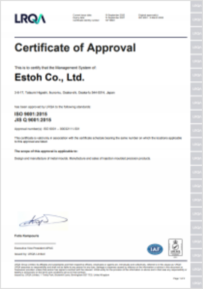 | 適合規格 | ISO 9001:2015 JIS Q 9001:2015 |