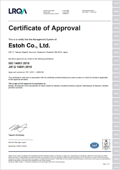 | 適合規格 | ISO 14001:2015 JIS Q 14001:2015 |