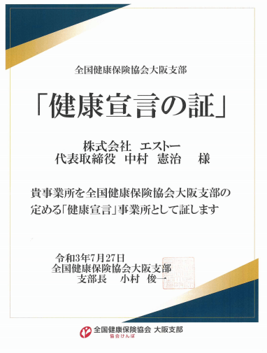 株式会社エストー(本社:大阪府大阪市生野区 代表取締役社長:中村憲治)は、2026年3月9日(月)「健康経営優良法人2026(中小規模法人部門)」に昨年に引き続き、正式認定されましたのでお知らせいたします。