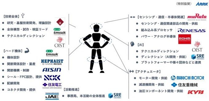 現在、以下の企業・機関がメンバーとして参画しております。産業界・学術界を横断する“ヒューマノイドのための日本連合”として、今後も広く参画を募ってまいります。