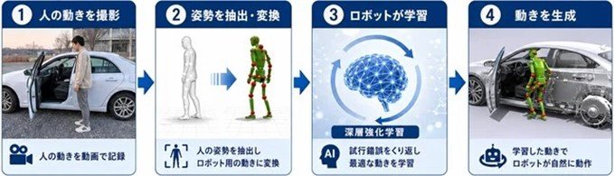 我々KyoHAは、人の動きをそのまま学習に取り入れることで、ロボット動作生成の新しいアプローチを提案します。動画から抽出した姿勢情報を活用し、ロボットが試行錯誤を通じて動作を獲得します。