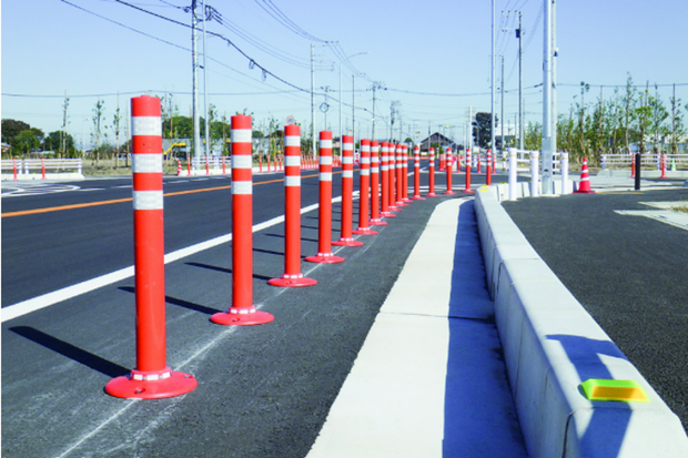 車線分離標や視線誘導標として設置され、交差点などでの交通の安全を守るために使われます。使用環境・用途に合わせたさまざまなバリエーションがあり、高速道路や一般道、市街地・商業施設など豊富な採用実績があります。