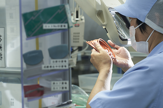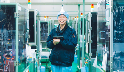 製造部で加硫工程を担当しています。熱と圧力を使うこの工程では、手順を遵守し、安全を最優先に作業しています。効率を追求し、目標を達成した瞬間に大きな手応えを感じます。今の目標は、着実にキャリアを積み重ねていくことです。