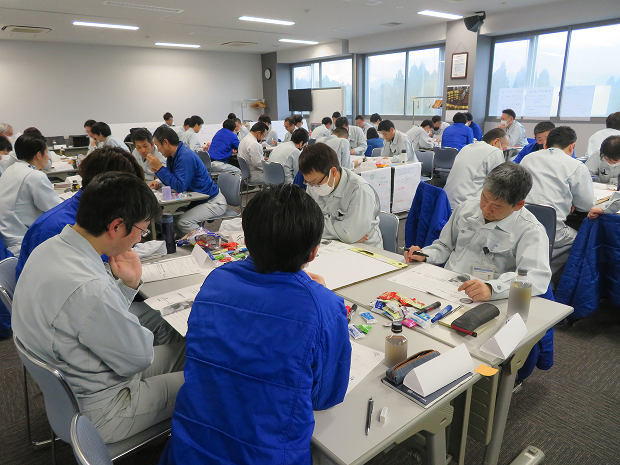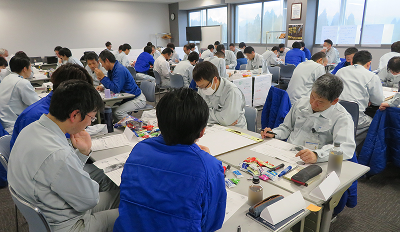 入社後は、仕事の基本を学ぶ新入社員研修を行います。 安全教育をはじめ、会社の規則やルール、品質に関する基礎知識などを座学で丁寧に学び、第一歩をしっかりと踏み出せるようサポートします。