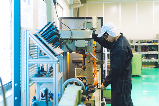 製造部は、安全と品質を最優先に、高精度な製品を安定して生産する部門です。技術と改善を積み重ね、お客様に信頼されるモノづくりを実現しています。