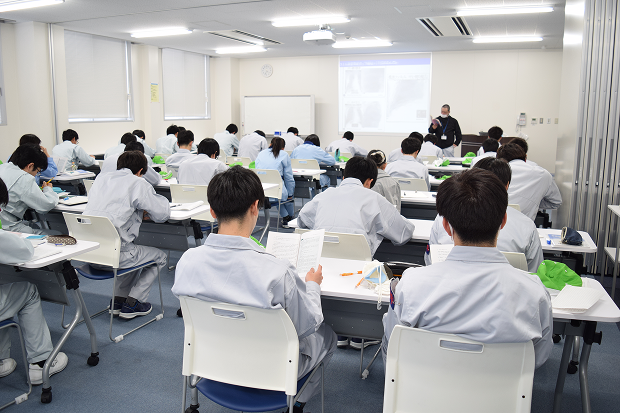 入社後は、まず新入社員や中途入社の方を対象に、仕事の基本を学ぶ研修を行います。安全教育をはじめ、会社の規則やルール、品質に関する基礎知識などを座学で丁寧に学び、第一歩をしっかりと踏み出せるようサポートします。経験を重ねるごとに理解を深め、安心して業務に取り組めるよう丁寧な育成体制を整えています。