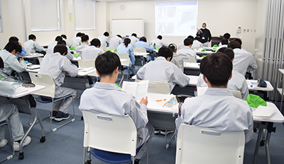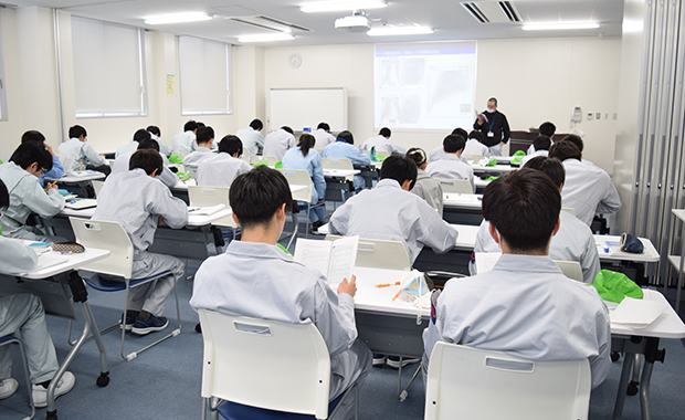 入社後は、仕事の基本を学ぶ研修を行います。安全教育をはじめ、会社の規則やルール、品質に関する基礎知識などを座学で丁寧に学び、第一歩をしっかりと踏み出せるようサポートします。
